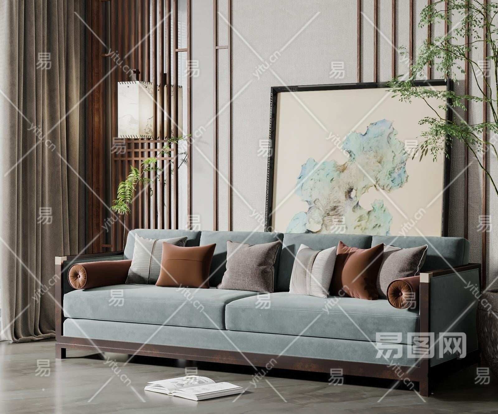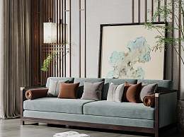 新中式多人位沙发3D模型下载