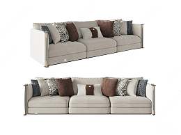 新中式布艺三人沙发3D模型下载