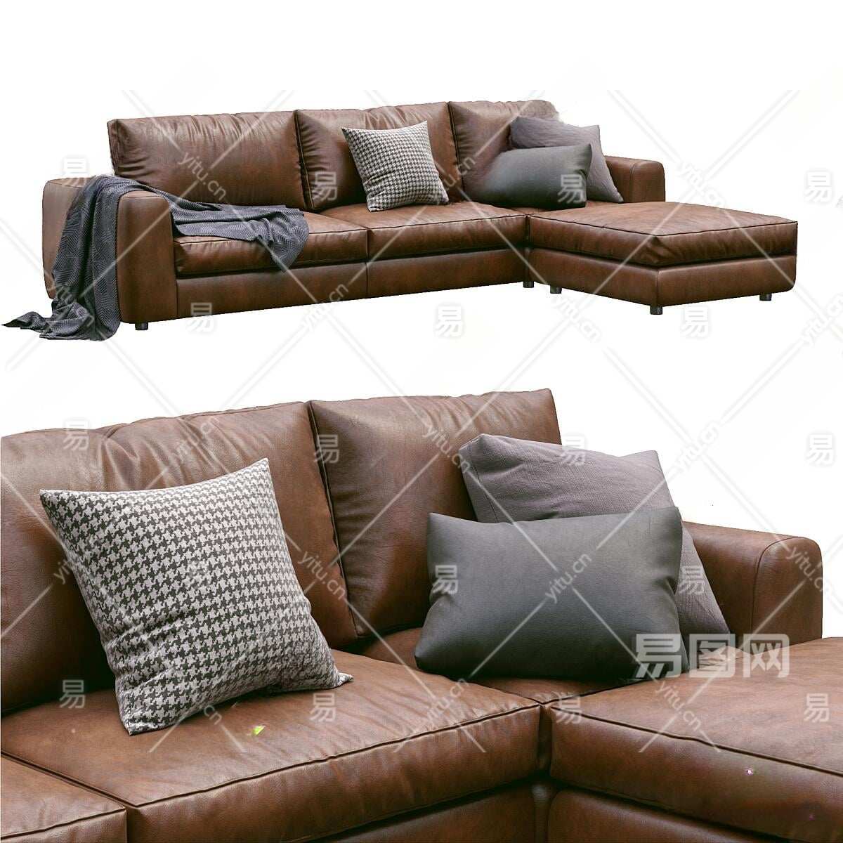 现代皮革转角沙发3D模型下载