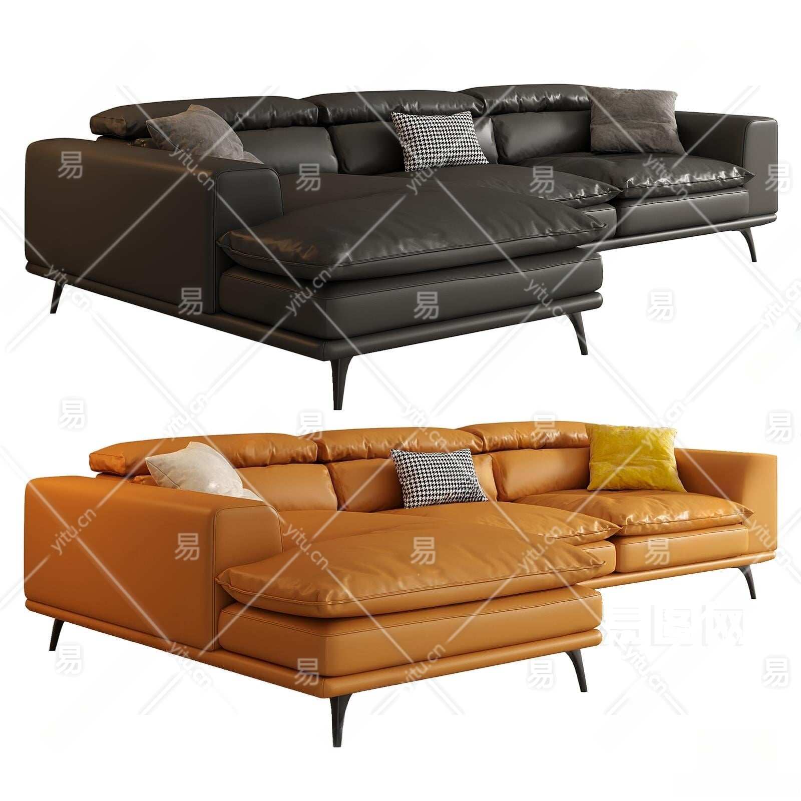 现代多人转角沙发3D模型下载
