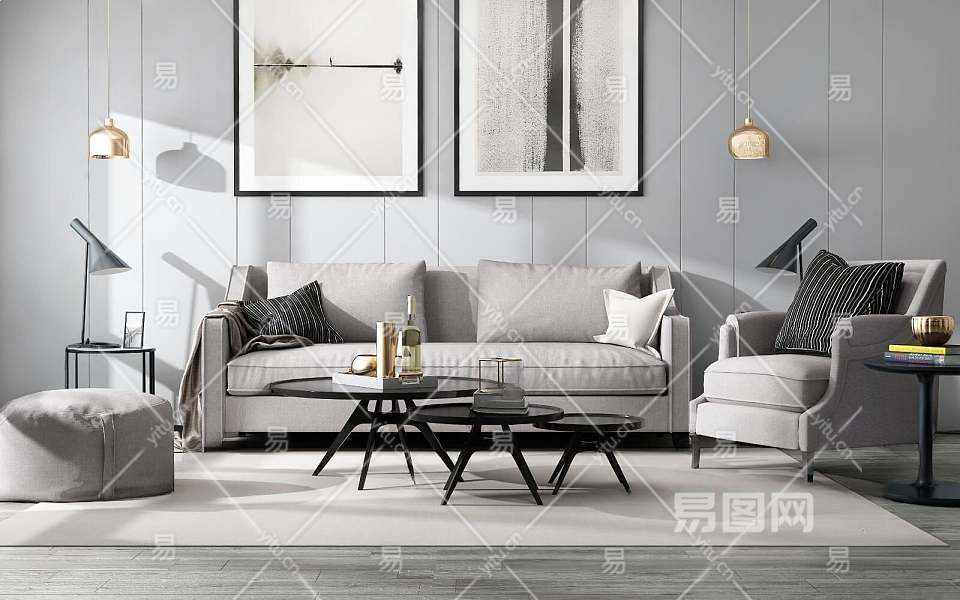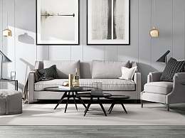 现代沙发茶几组合背景墙3D模型下载