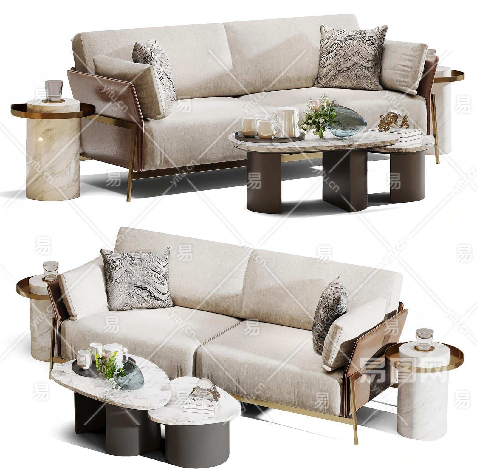现代沙发茶几组合3D模型下载