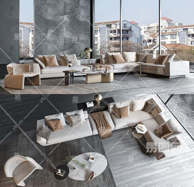 MINOTTI现代沙发茶几组合3D模型下载