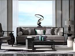 新中式轻奢多人沙发3D模型下载