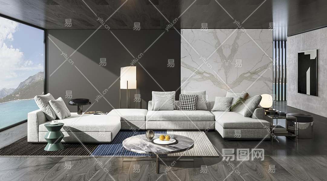 现代家居客厅3D模型下载