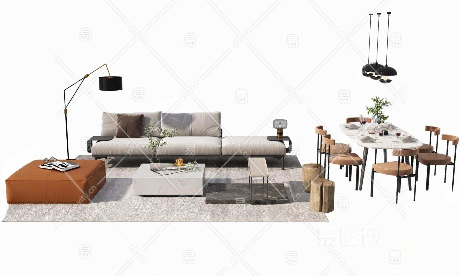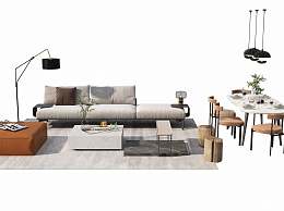 现代沙发茶几组合3D模型下载