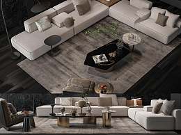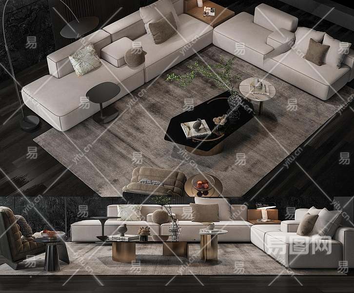 现代沙发茶几组合3D模型下载