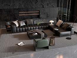 现代沙发茶几组合3D模型下载