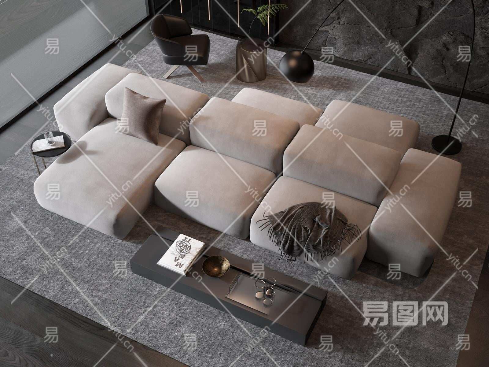 现代沙发茶几组合3D模型下载
