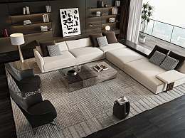 现代沙发茶几组合3D模型下载