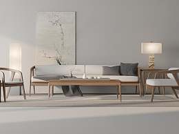 新中式沙发茶几组合3D模型下载