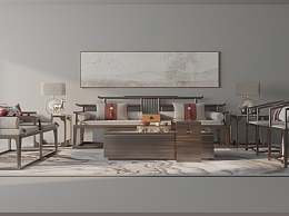 新中式沙发茶几组合3D模型下载