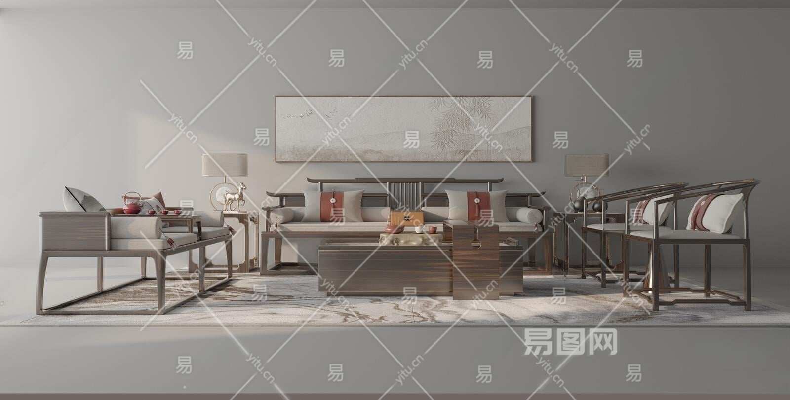 当前的位置:首页 > 3D模型 > 沙发 > 沙发茶几组合 > 新中式沙发茶几组合3D模型下载