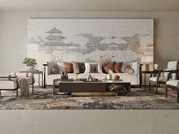 新中式沙发茶几组合3D模型下载
