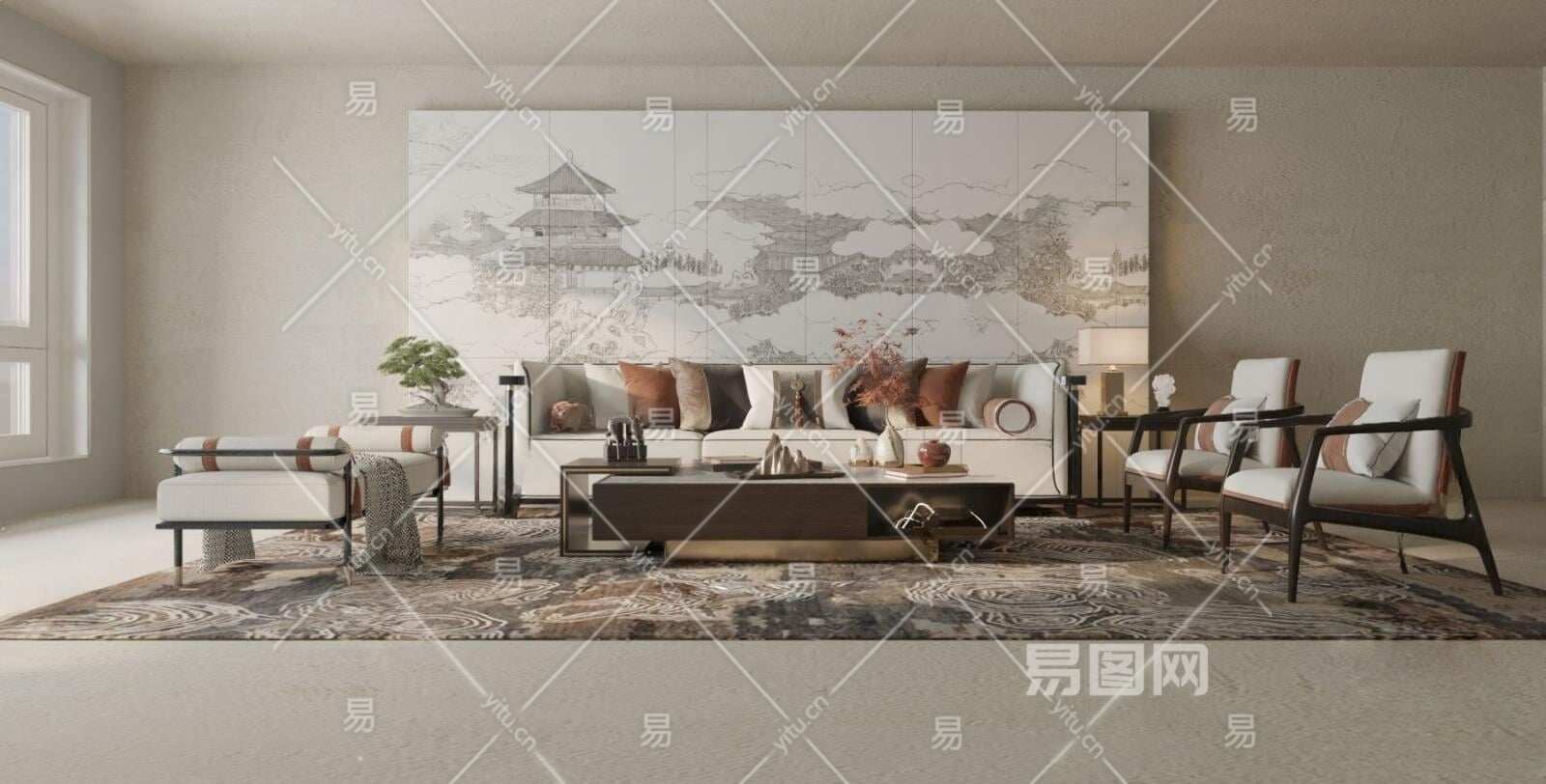当前的位置:首页 > 3D模型 > 沙发 > 沙发茶几组合 > 新中式沙发茶几组合3D模型下载