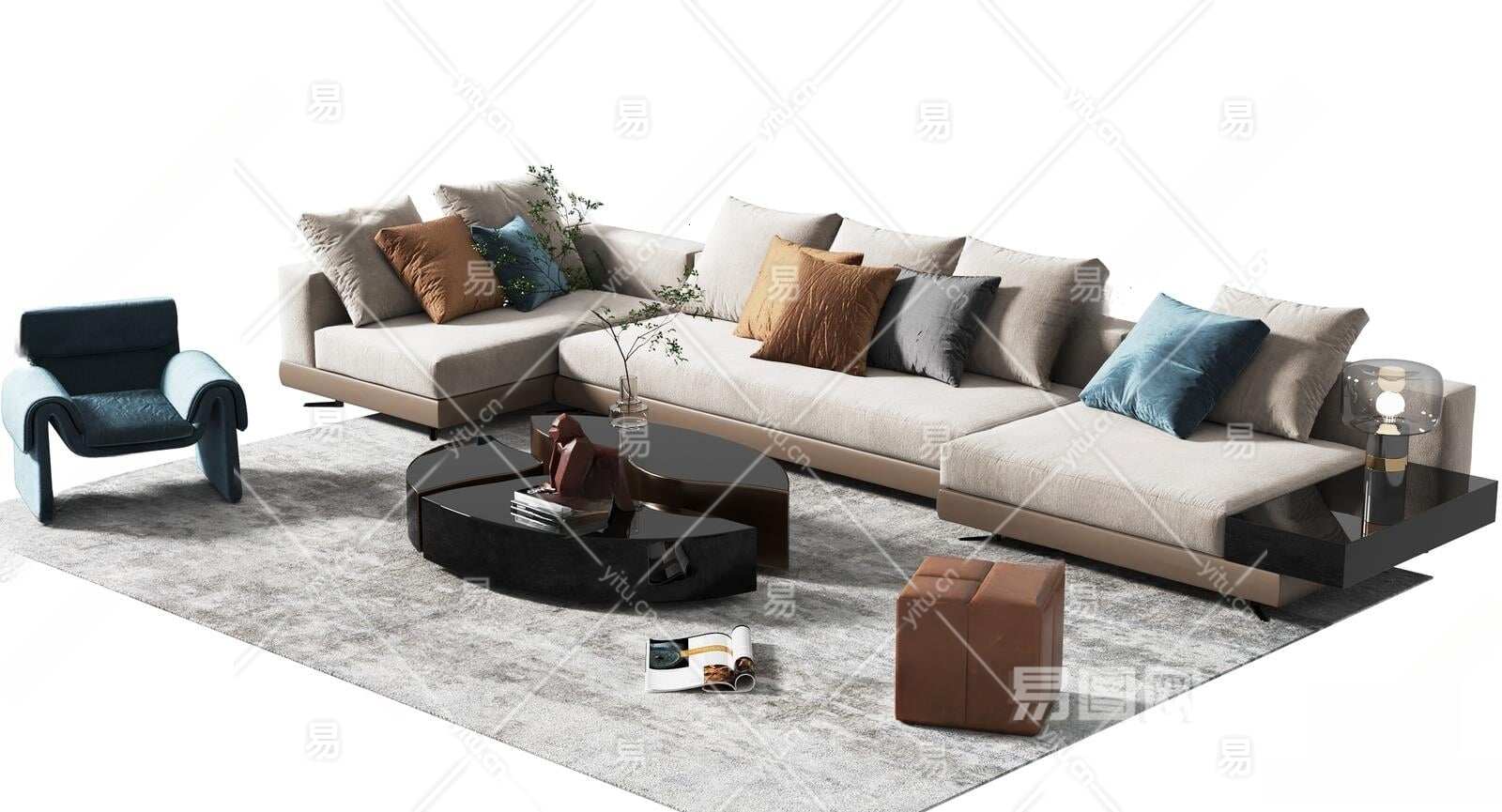 现代沙发茶几组合3D模型下载