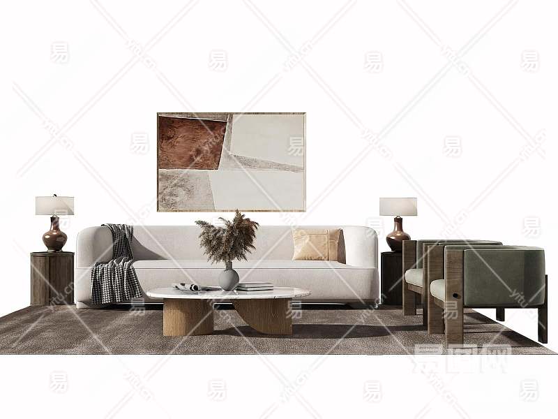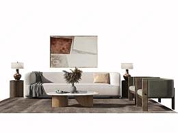 侘寂沙发茶几组合3D模型下载