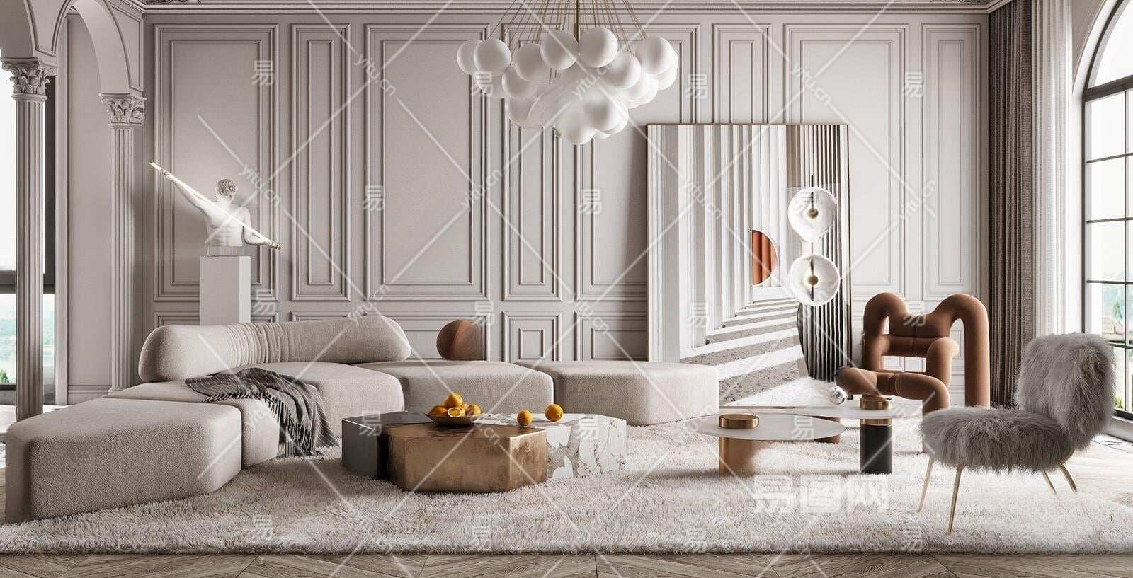 法式沙发茶几组合3D模型下载