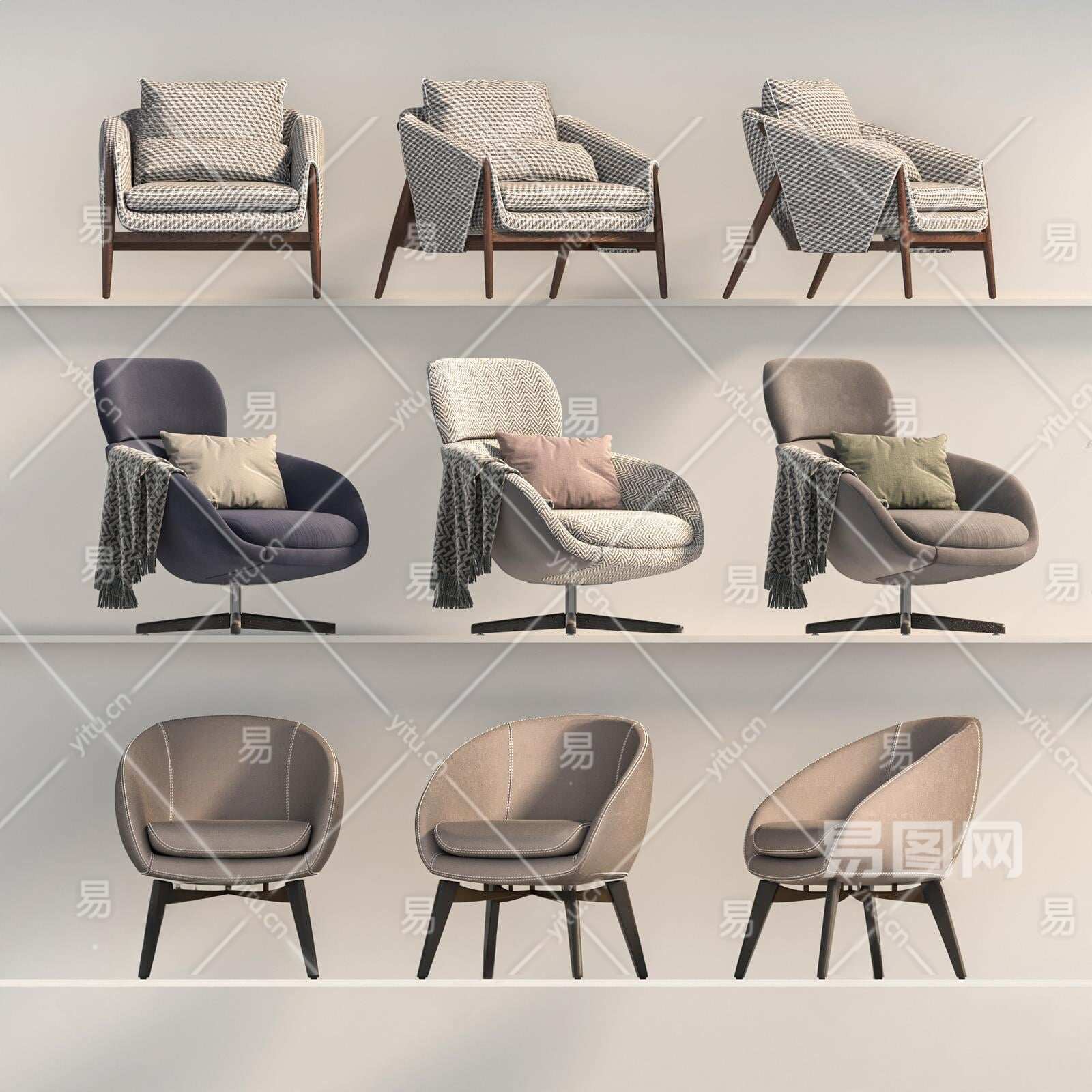 现代单人沙发3D模型下载