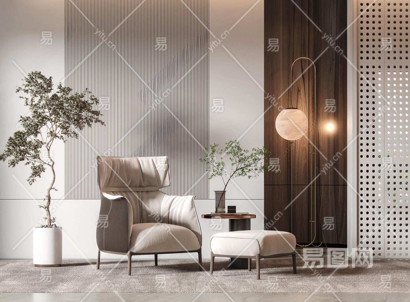 现代单人沙发3D模型下载