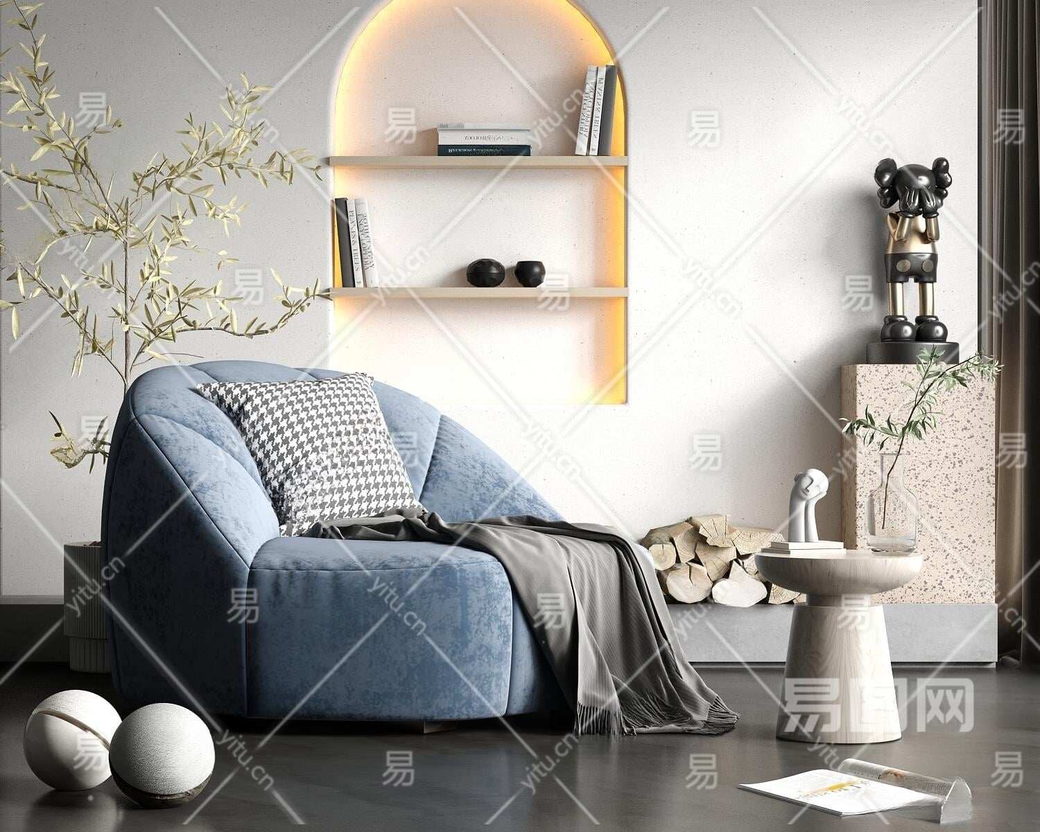 现代单人沙发3D模型下载