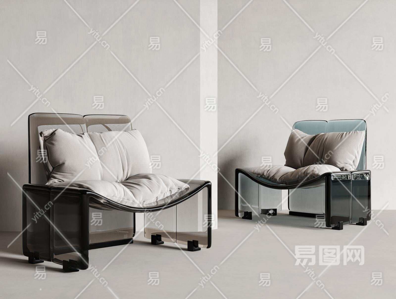 现代亚克力单人沙发3D模型下载