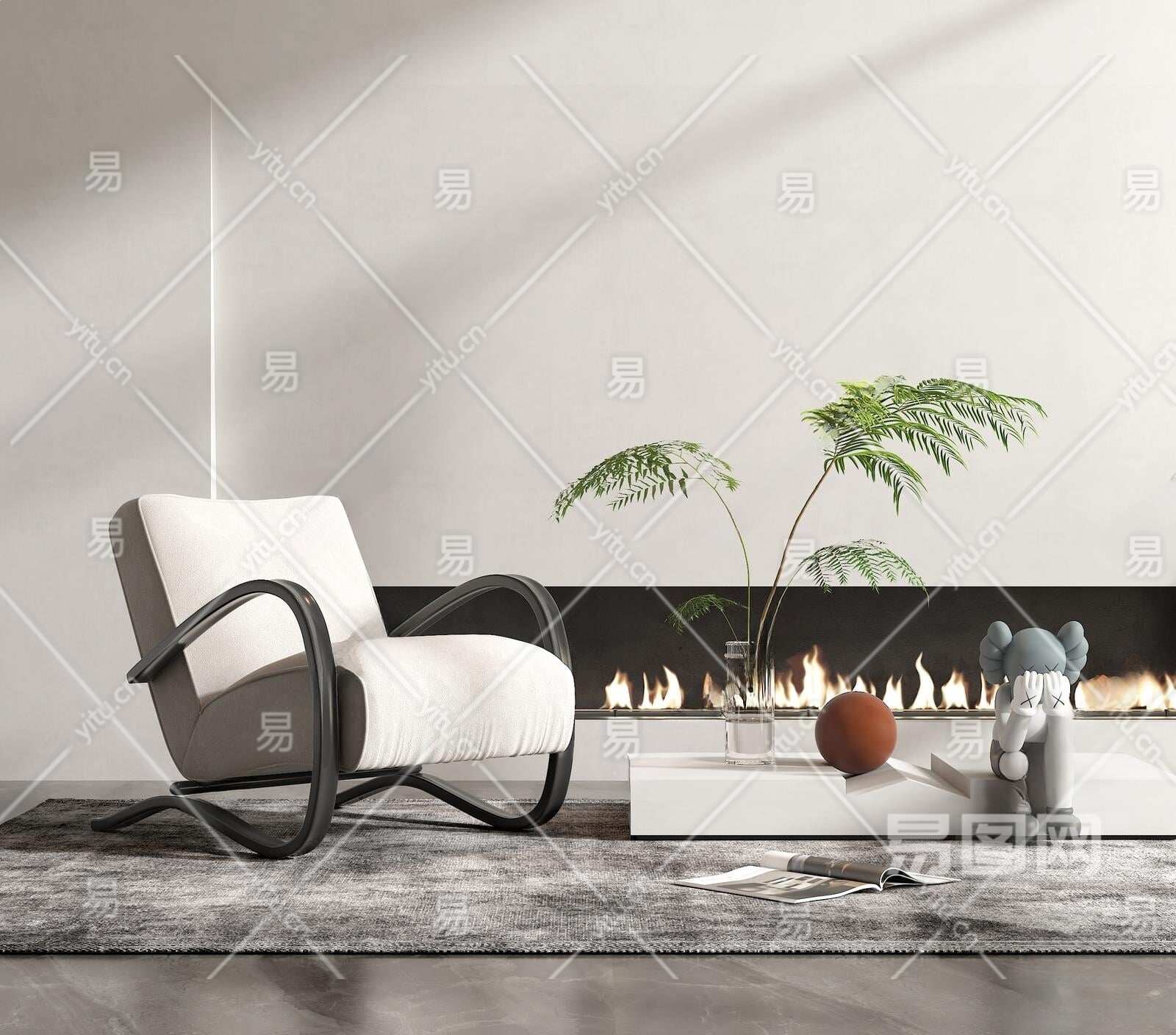 现代单人沙发3D模型下载