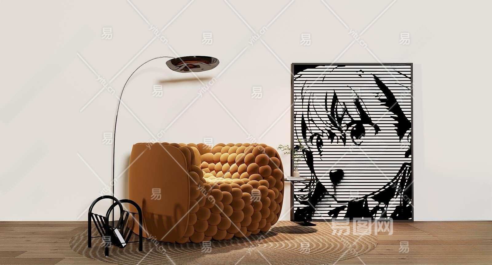 现代单人沙发3D模型下载