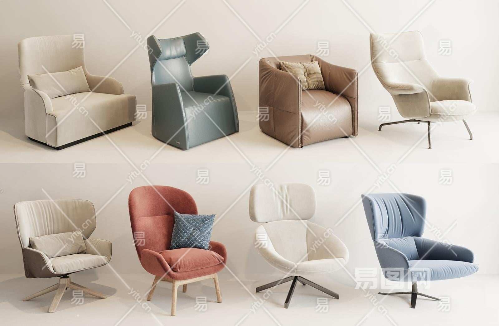 现代单人沙发3D模型下载