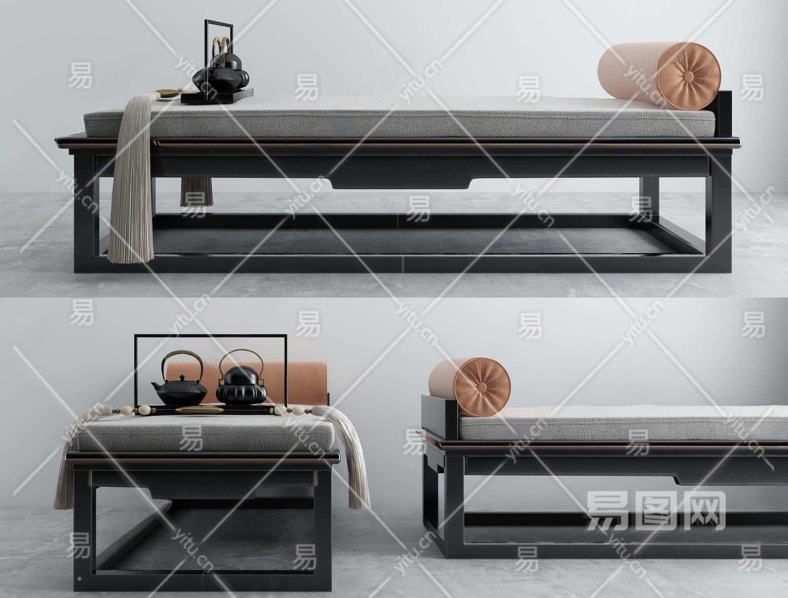 新中式贵妃椅3D模型下载