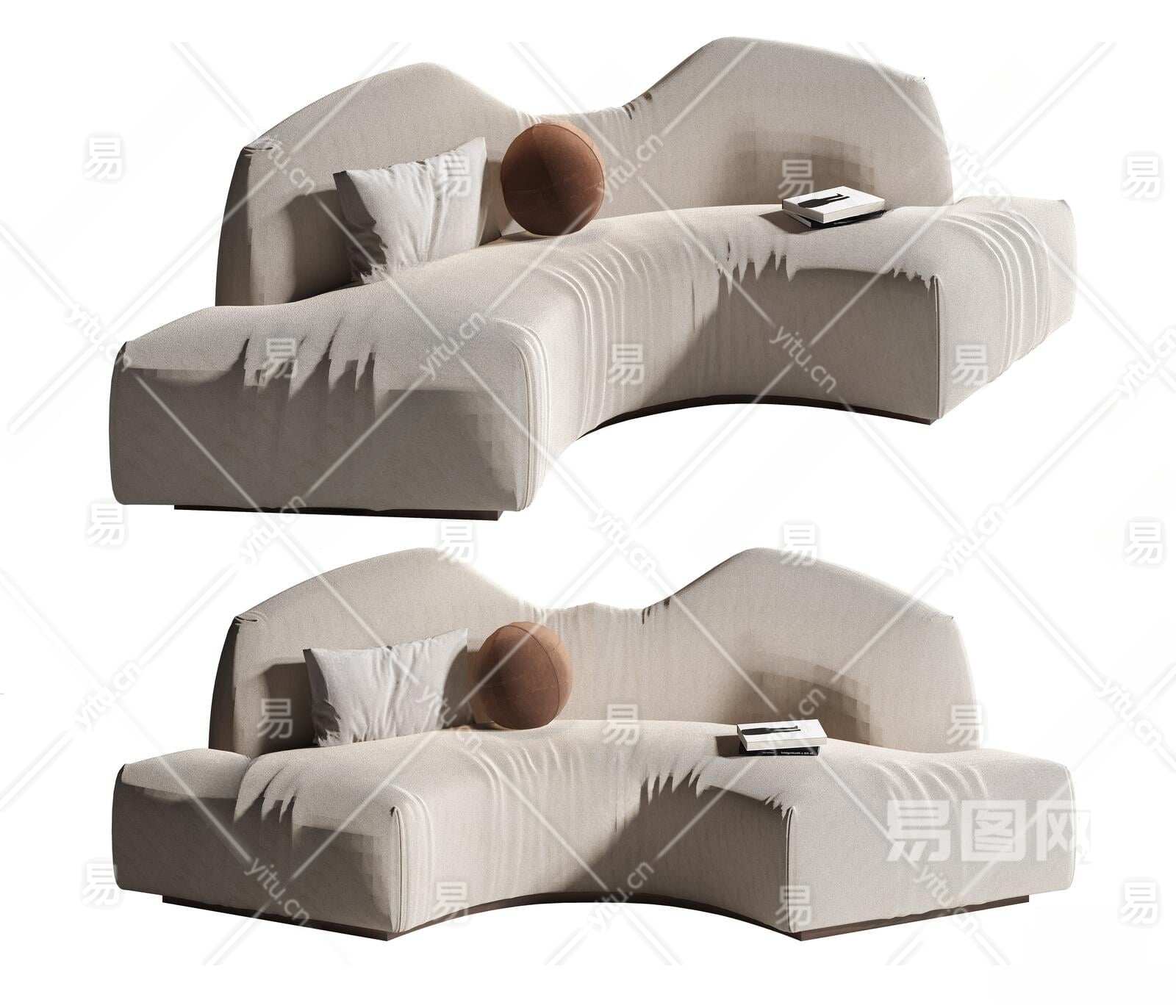 侘寂风异形沙发3D模型下载