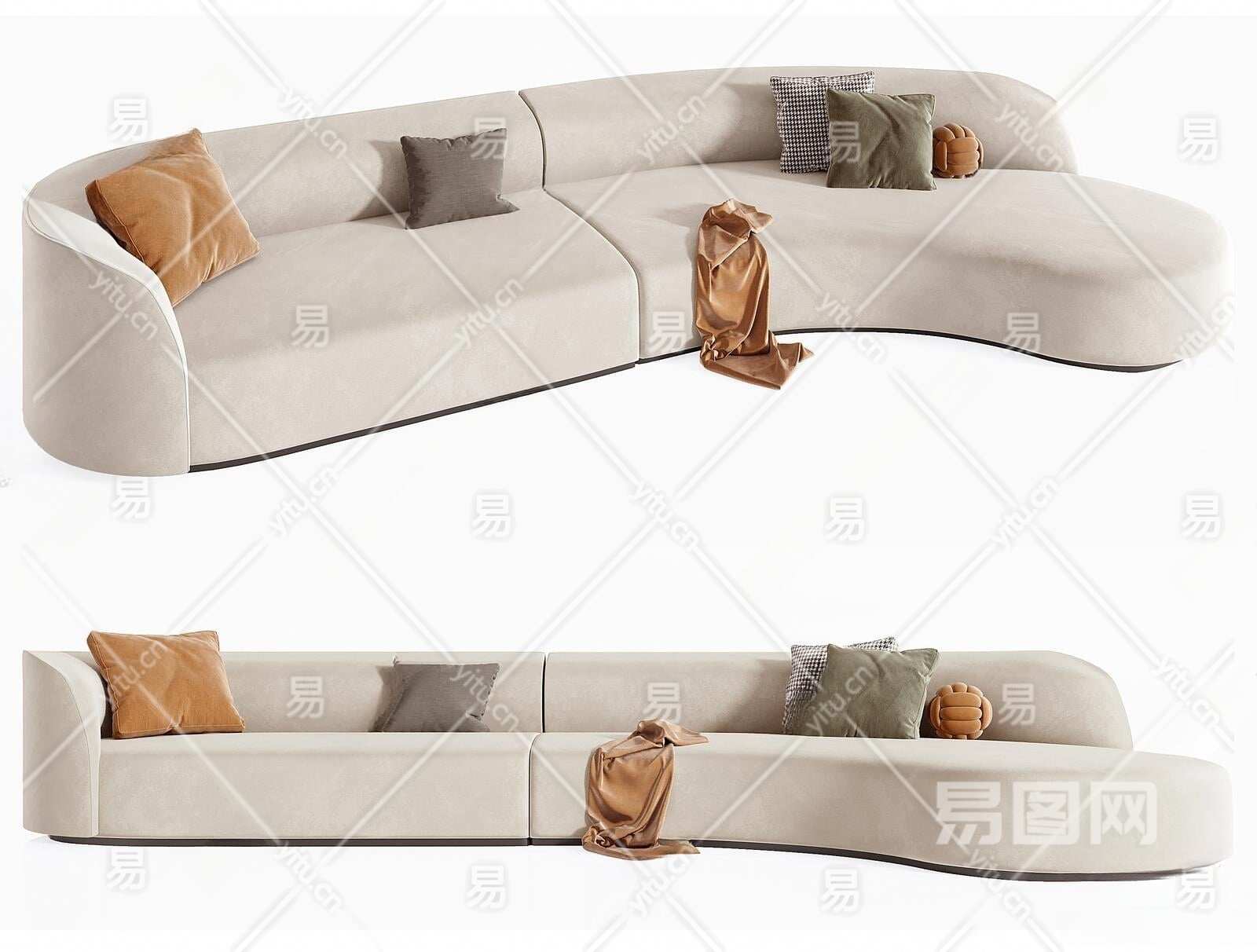 现代异形布艺沙发3D模型下载