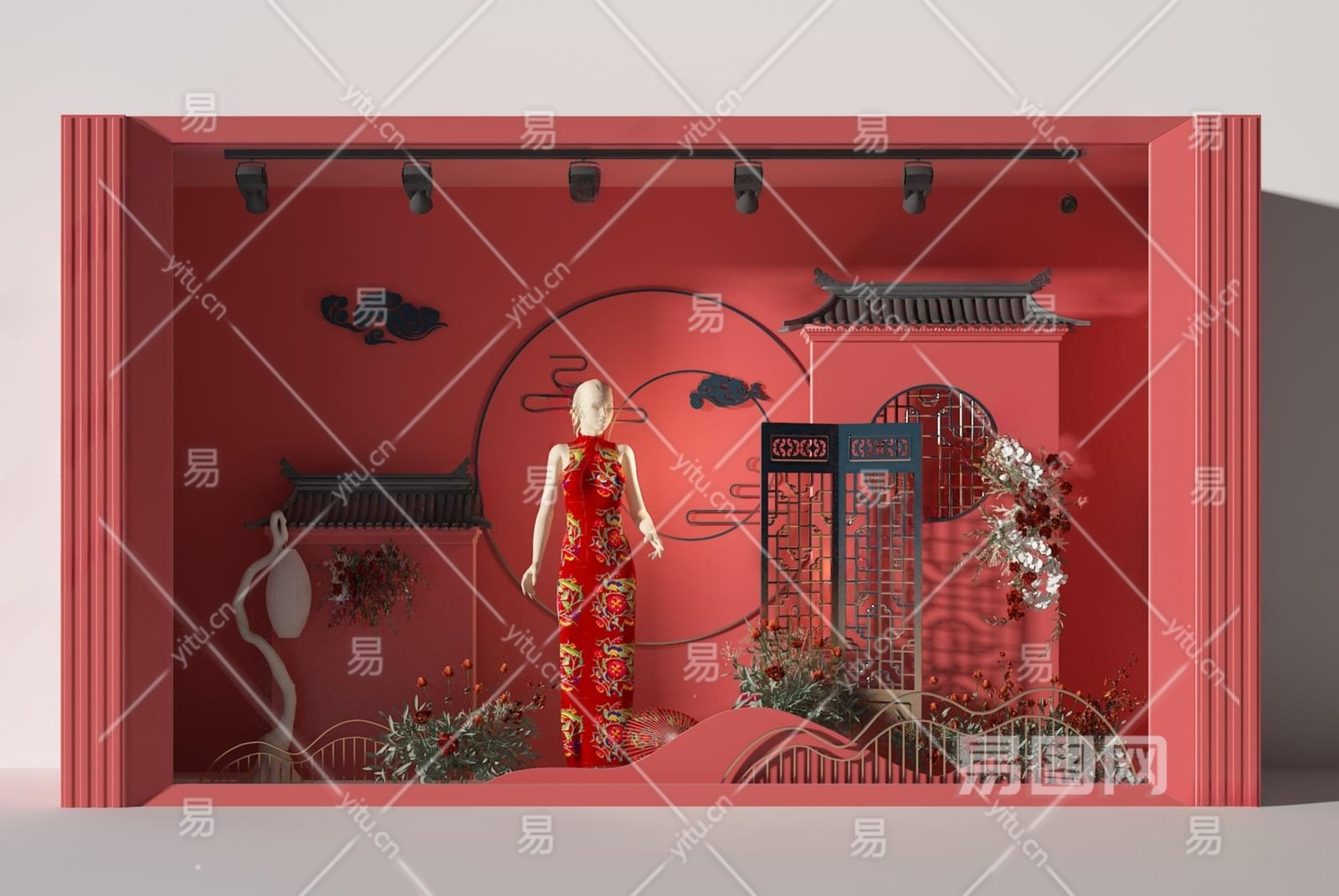 中式七夕情人节橱窗3D模型下载