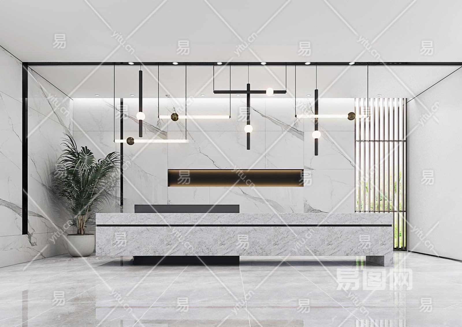 现代售楼处前台3D模型下载