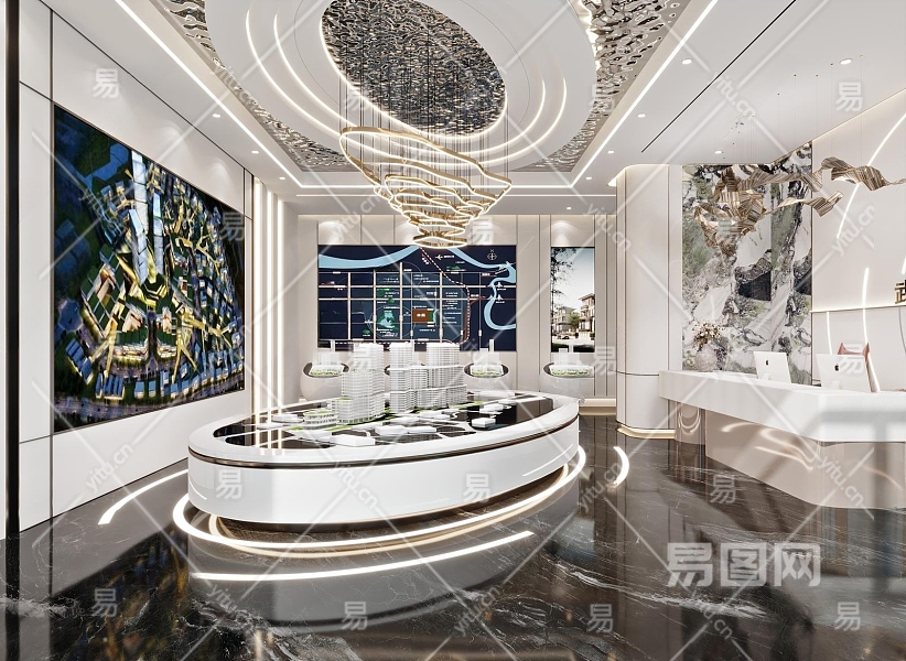 现代售楼部沙盘区3D模型下载