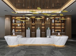 新中式售楼处前台接待3D模型下载