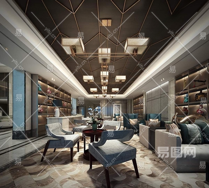 新中式售楼大厅3D模型下载