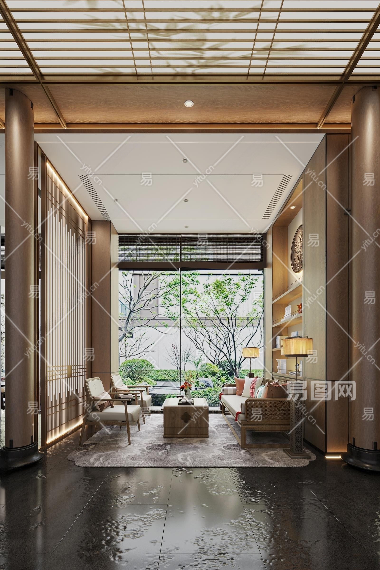 吴文粒设计新中式售楼处接待区3D模型下载