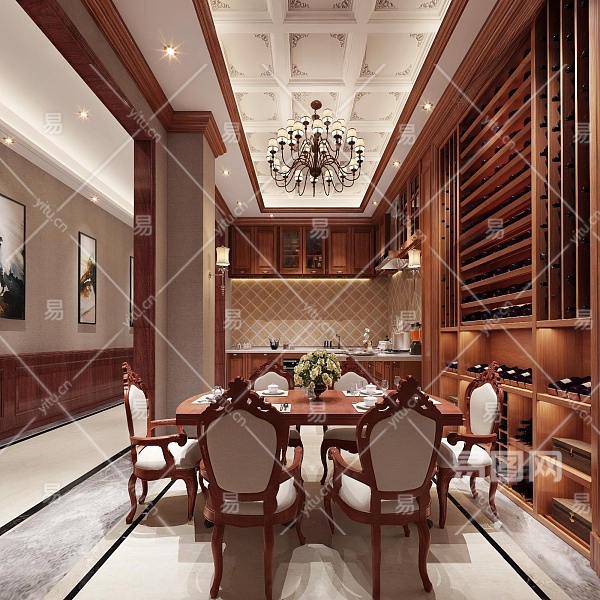 美式现代过道酒窖厨房护墙板展厅3D模型下载