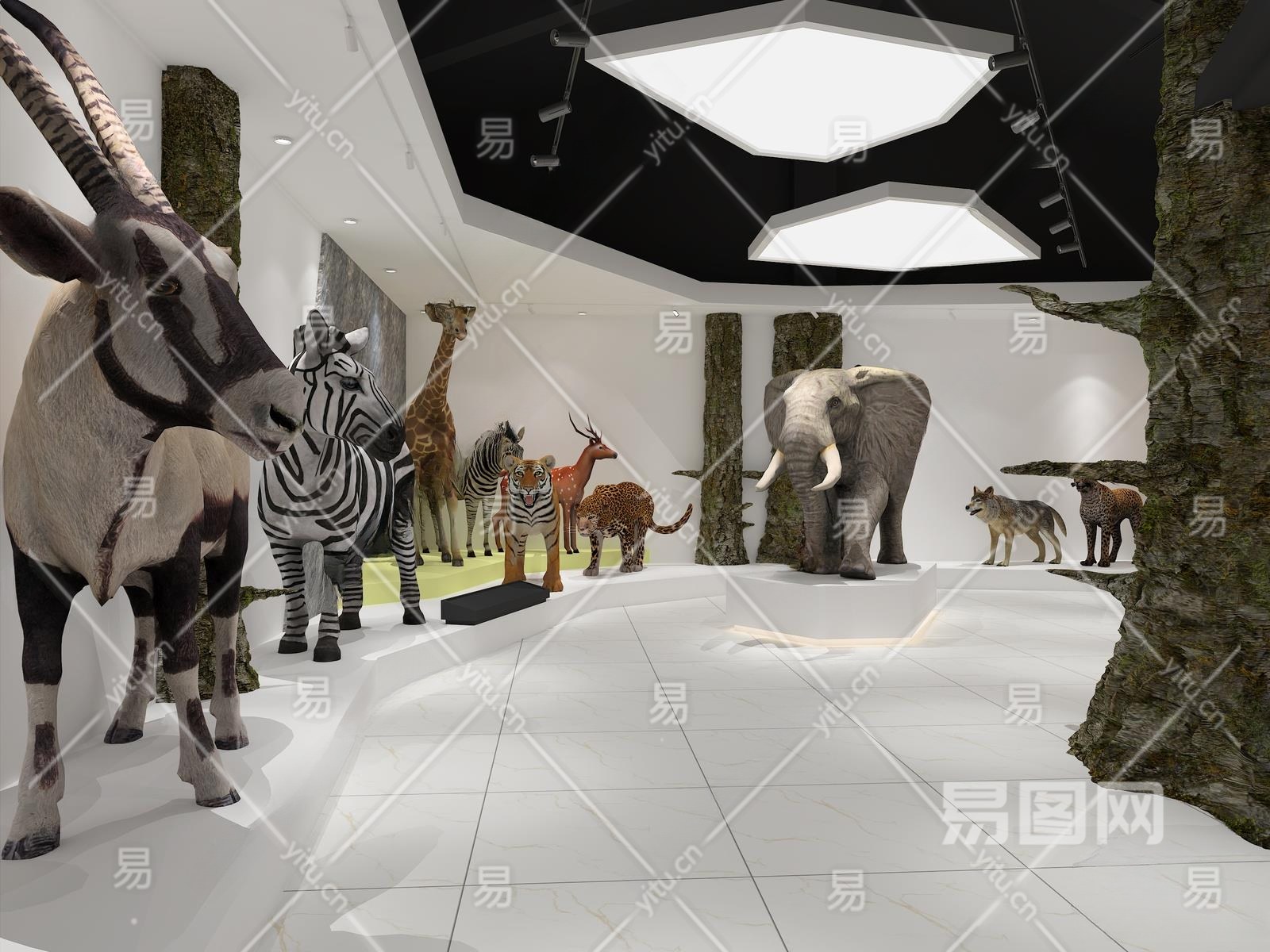 现代动物模型展厅3D模型下载