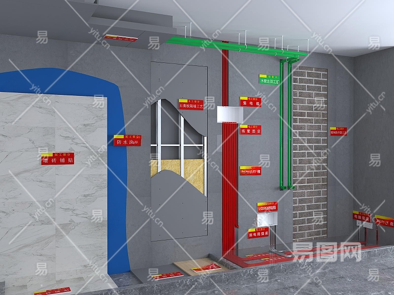 现代家装材料工艺展示厅3D模型下载