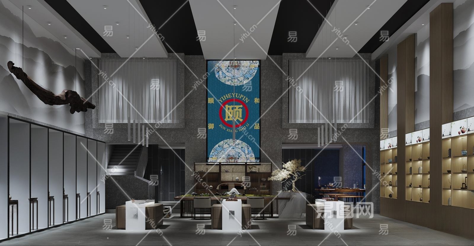 新中式茶文化展厅3D模型下载