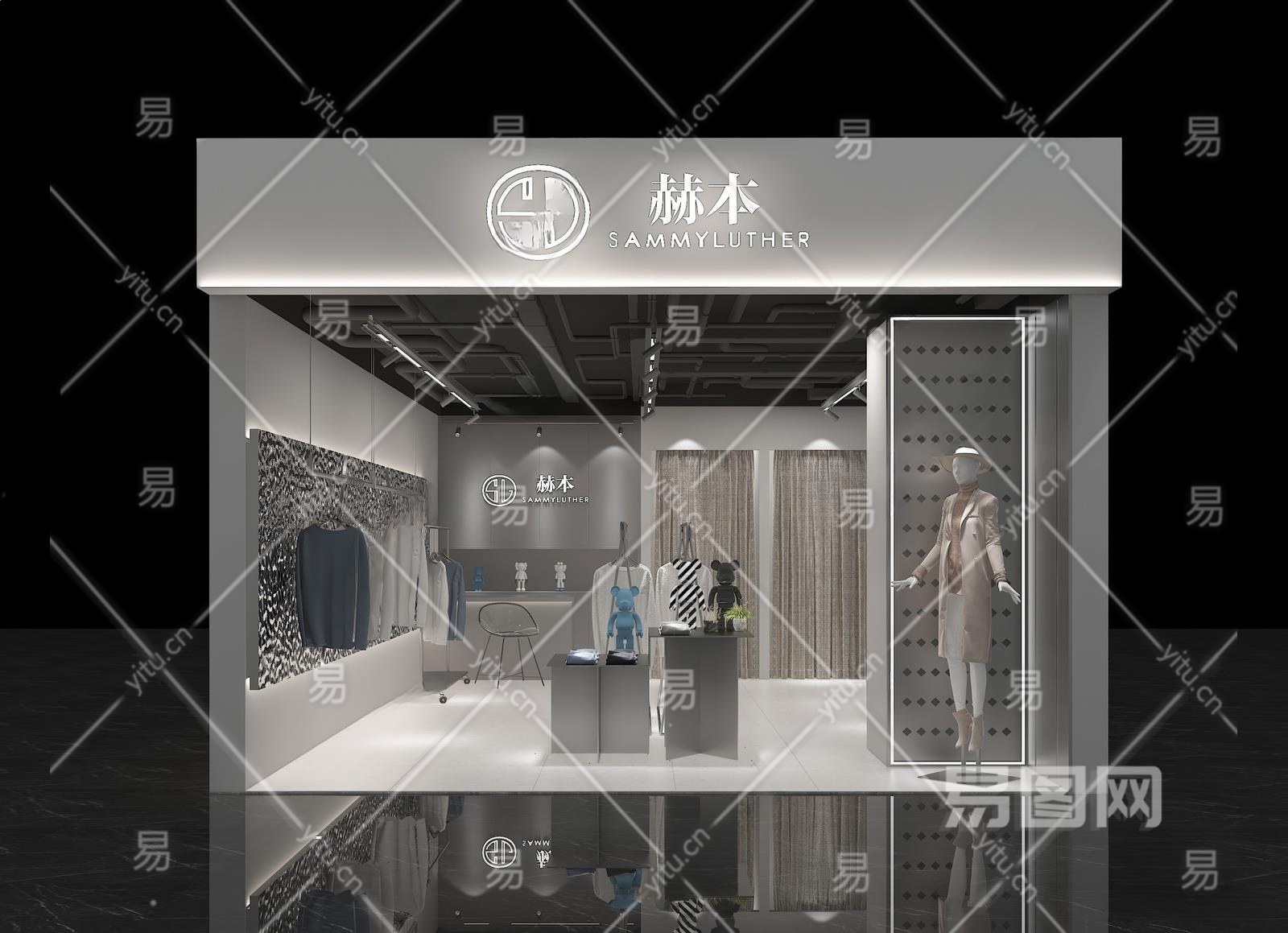 现代服装鞋店3D模型下载