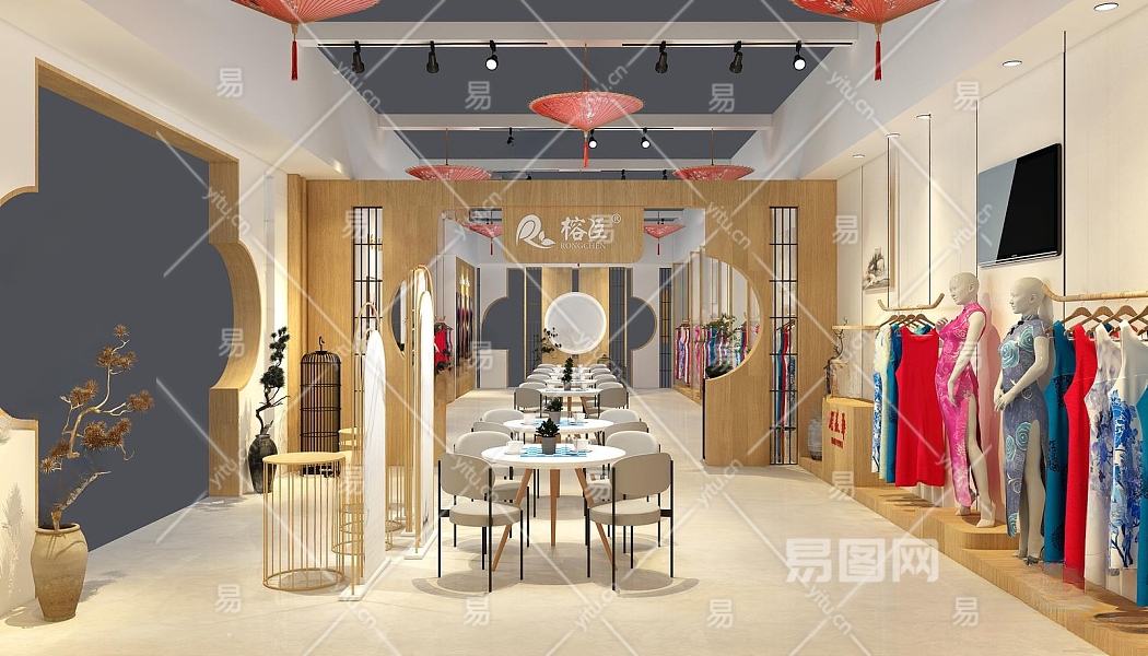 新中式服装鞋店3D模型下载