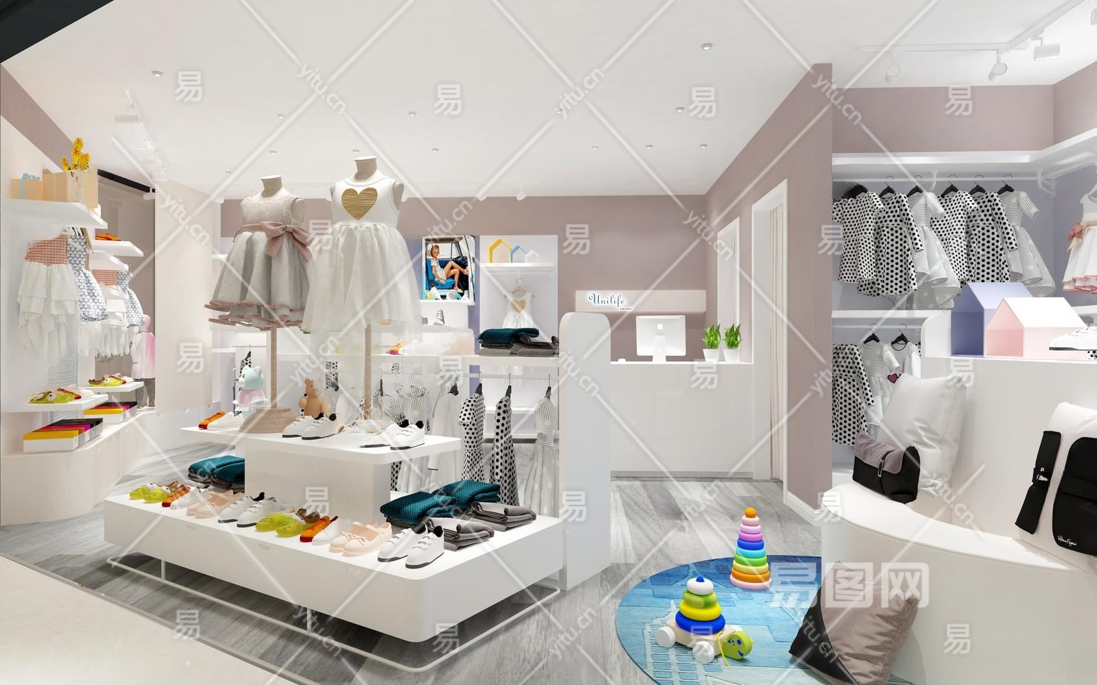 现代儿童服装鞋店3D模型下载