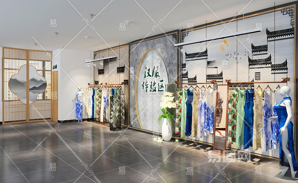 新中式旗袍店3D模型下载