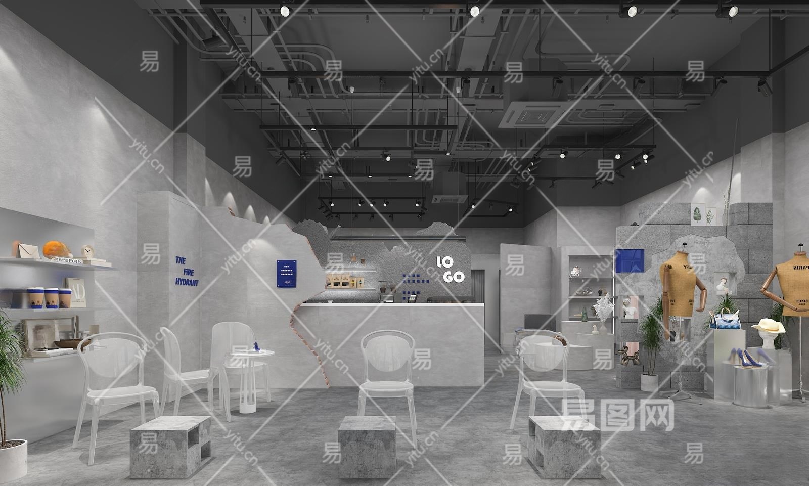 工业风服装鞋店3D模型下载