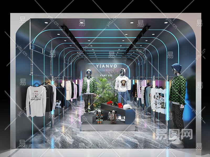 现代男装服装店3D模型下载