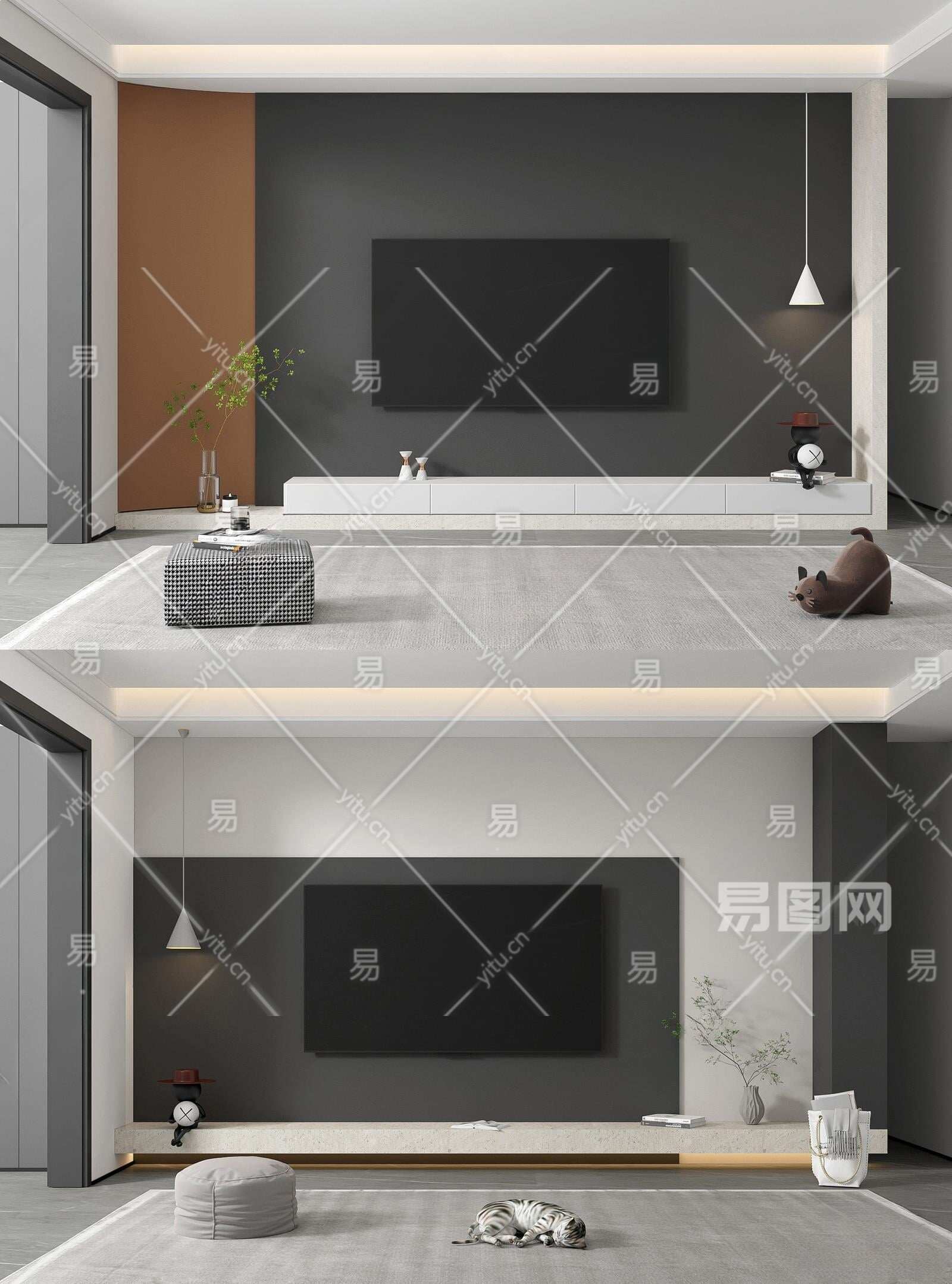 现代简约电视背景墙3D模型下载