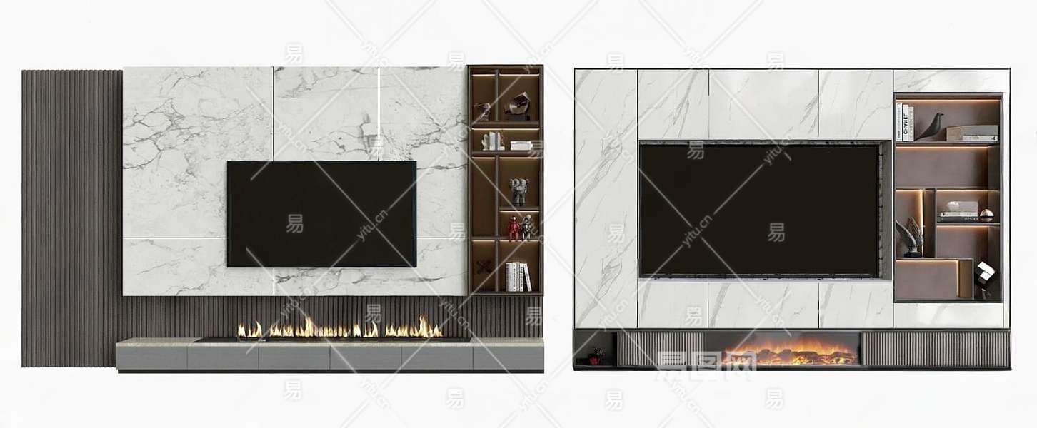 现代大理石电视背景墙3D模型下载